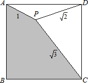 P為正方形ABCD內(nèi)部一點(diǎn),PA=1,數(shù)學(xué)公式,數(shù)學(xué)公式,求陰影部分的面積SABCP