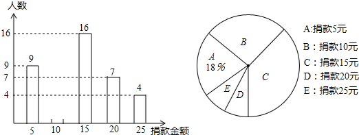 (2)請估計(jì)該校九年級學(xué)生中有多少名學(xué)生捐款為25元?