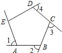如圖,∠1,∠2,∠3,∠4是五邊形ABCDE的外角,且∠1=∠2=∠3=∠4=70°,則∠AED的度數(shù)是________.
