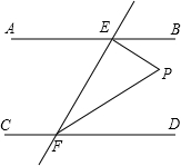 如圖,若AB∥CD,EF與AB、CD分別相交于點(diǎn)E、F,EP⊥EF,∠EFD的平分線與EP相交于點(diǎn)P,且∠BEP=40°,則∠EPF=________度.