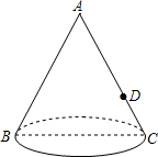 如圖,圓錐的軸截面(過(guò)圓錐頂點(diǎn)和底面圓心的截面)是邊長(zhǎng)為4cm的等邊三角形ABC,點(diǎn)D是母線AC的中點(diǎn),一只螞蟻從點(diǎn)B出發(fā)沿圓錐的表面爬行到點(diǎn)D處,則這只螞蟻爬行的最短距離是________cm.