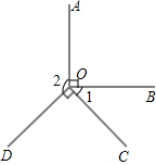 已知:如圖,∠AOB=∠COD=90゜,則∠1與∠2的關系是
