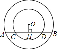 如圖,兩個O為圓心的同心圓,大圓的弦AB交小圓于C、D兩點,OH⊥AB于H,則圖中相等的線段共有