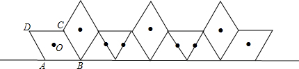 如圖,菱形ABCD中,AB=2,∠D=60°,菱形ABCD在直線上向右作無滑動的翻滾,每繞著一個頂點(diǎn)旋轉(zhuǎn)60°叫一次操作.
