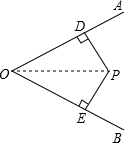 如圖,點(diǎn)P是∠AOB內(nèi)一點(diǎn),PD⊥OA,PE⊥OB,D、E分別是垂足,且PD=PE,若∠DPE=120°,則∠DOP=________°.
