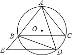 如圖,△ABC內(nèi)接于⊙O,且∠ABC=∠C,點(diǎn)D在弧BC上運(yùn)動(dòng).過點(diǎn)D作DE∥BC,DE交AB的延長(zhǎng)線于點(diǎn)E,連接BD.