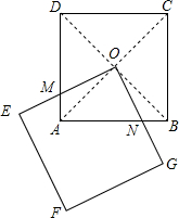 如圖,正方形OEFG繞著正方形ABCD的對角線的交點O旋轉(zhuǎn),邊OE、OG分別交邊AD、AB于點M、N.