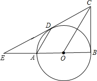 如圖,已知:AB是⊙O的直徑,BC、CD分別是⊙O的切線,切點(diǎn)分別為B、D,E是BA和CD的延長線的交點(diǎn).
