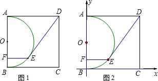 在邊長為10的正方形ABCD中,以AB為直徑作半圓O,如圖①,E是半圓上一動點(diǎn),過點(diǎn)E作EF⊥AB,垂足為F,連接DE.