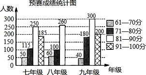 | 年級 | 10名選手的復(fù)賽成績(分) |