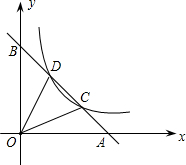 如圖,直線AB過(guò)點(diǎn)A(4,0)、B(0,3).反比例函數(shù)數(shù)學(xué)公式(p>0)的圖象與直線AB交于C、D兩點(diǎn),連接OC、OD.