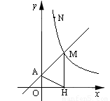 (x>0)的圖象交于點M,過M作MH⊥x軸于點H,且tan∠AHO=