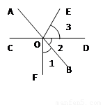 如圖所示,已知AB、CD相交與O,OE平分∠AOD,OF⊥CD于O,∠1=40°,則∠2= ,∠3= .