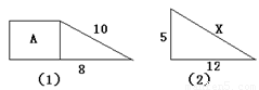 如圖(1)、(2)中,(1)正方形A的面積為 .(2)斜邊x= .