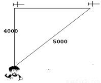 如圖,飛機(jī)在空中水平飛行,某一時(shí)刻剛好飛到一男孩子頭頂上方4000米處,過了20秒,飛機(jī)距離這個(gè)男孩頭頂50000米.飛機(jī)每小時(shí)飛行多少千米?