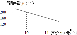 的銷售量y(個(gè))與它的定價(jià)x(元/個(gè))的關(guān)系如圖所示: