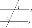 如圖,已知a∥b,∠1=65°,則∠2的度數為【 】