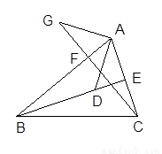 如圖:在△ABC中,BE、CF分別是AC、AB兩邊上的高,在BE上截取BD=AC,在CF的延長(zhǎng)線上截取CG=AB,連結(jié)AD、AG.