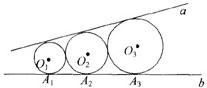 如圖,已知⊙O1與⊙O2外切,⊙O2與⊙O3外切,三個圓都與直線a、直線b相切,其中A1、A2、A3分別為切點⊙O1的半徑為3,⊙O的半徑為4,則⊙O3的半徑為 .