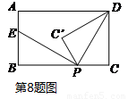 8.如圖,矩形ABCD中,AB=3,BC=5,點P是BC邊上的一個動點 (點P不與點B、C重合),現(xiàn)將△PCD沿直線PD折疊,使點C 落到點C’處;作∠BPC’的角平分線交AB于點E.設(shè)BP=x,BE =y, 則下列圖象中,能表示y與x的函數(shù)關(guān)系的圖象大致是( )