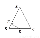 如圖,△ABC中,AB=AC=13,BC=10,D為BC中點,DE⊥AB于E,則DE= ▲ .