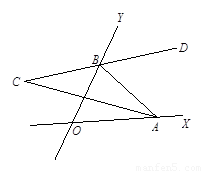 兩條相交的直線OX、OY,使∠XOY=nº,在射線OX、OY上分別再任意取A、B兩點(diǎn),作∠ABY的平分線BD,BD的反向延長線交∠OAB的平分線于點(diǎn)C,隨著點(diǎn)A、B位置的變化,∠C的大小是否會變化?若保持不變,請求出∠C的度數(shù);若發(fā)生變化,求出變化范圍.