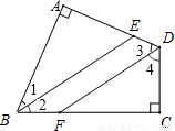 如圖,四邊形ABCD中,∠A=∠C=90°,BE平分∠ABC,DF平分∠ADC,則BE與DF有何位置關(guān)系?試說(shuō)明理由.