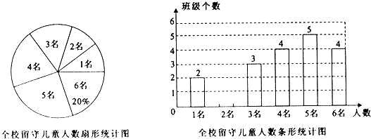(10分)為實(shí)施“農(nóng)村留守兒童關(guān)愛計(jì)劃”,某校對(duì)全校各班留守兒童的人數(shù)情況進(jìn)行了統(tǒng)計(jì),發(fā)現(xiàn)各班留守兒童人數(shù)只有1名、2名、3名、4名、5名、6名共六種情況,并制成如下兩幅不完整的統(tǒng)計(jì)圖: