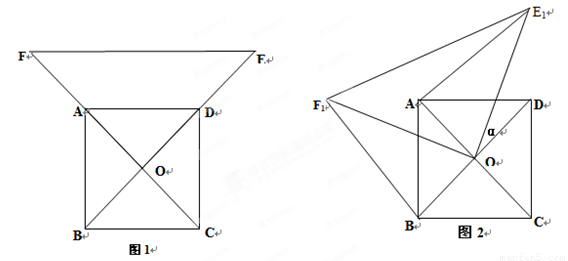 (12分)如圖1,O為正方形ABCD的中心,分別延長(zhǎng)OA、OD到點(diǎn)F、E