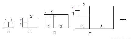 (9分)意大利著名數(shù)學(xué)家斐波那契在研究兔子繁殖問題時(shí),發(fā)現(xiàn)有這樣一組數(shù):1,1,2,3,5,8,13,…,其中從第三個(gè)數(shù)起,每一個(gè)數(shù)都等于它前面兩個(gè)數(shù)的和.現(xiàn)以這組數(shù)中的各個(gè)數(shù)作為正方形的邊長(zhǎng)值構(gòu)造如下正方形: