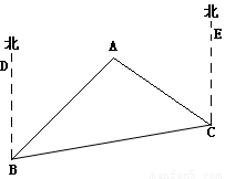 如圖,A點(diǎn)在B處的北偏東40°方向,C點(diǎn)在B處的北偏東85°方向,A點(diǎn)在C處的北偏西45°方向,求∠BAC及∠BCA的度數(shù). (5分)