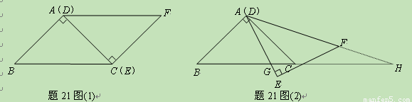 如圖(1),△ABC與△EFD為等腰直角三角形,AC與DE重合,AB=AC=EF=9,∠BAC=∠DEF=90º,固定△ABC,將△DEF繞點(diǎn)A順時(shí)針旋轉(zhuǎn),當(dāng)DF邊與AB邊重合時(shí),旋轉(zhuǎn)中止.現(xiàn)不考慮旋轉(zhuǎn)開(kāi)始和結(jié)束時(shí)重合的情況,設(shè)DE,DF(或它們的延長(zhǎng)線)分別交BC(或它的延長(zhǎng)線) 于G,H點(diǎn),如圖(2)