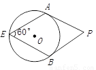 如圖,PA、PB分別切⊙O于點(diǎn)A、B,點(diǎn)E是⊙O上一點(diǎn),且∠AEB=60°,則∠P的度數(shù)為( )
