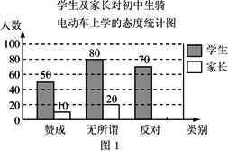 “初中生騎電動(dòng)車上學(xué)”的現(xiàn)象越來(lái)越受到社會(huì)的關(guān)注,某校利用假期,隨機(jī)抽查了本校若干名學(xué)生和部分家長(zhǎng)對(duì)“初中生騎電動(dòng)車上學(xué)”現(xiàn)象的看法,統(tǒng)計(jì)整理制作了如下的統(tǒng)計(jì)圖,請(qǐng)回答下列問(wèn)題:
