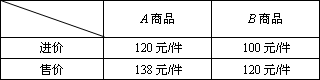 紅旺商店同時(shí)購(gòu)進(jìn)A、B兩種商品共用人民幣36000元,全部售完后共獲利6000元,兩種商品的進(jìn)價(jià)、售價(jià)如下表: