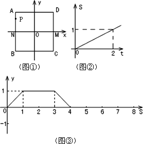 在平面直角坐標(biāo)系中,一動(dòng)點(diǎn)P(x,y)從M(1,0)出發(fā),沿由A(-1,1),B(-1,-1),C(1,-1),D(1,1)四點(diǎn)組成的正方形邊線(如圖①)按一定方向運(yùn)動(dòng).圖②是P點(diǎn)運(yùn)動(dòng)的路程s(個(gè)單位)與運(yùn)動(dòng)時(shí)間t(秒)之間的函數(shù)圖象,圖③是P點(diǎn)的縱坐標(biāo)y與P點(diǎn)運(yùn)動(dòng)的路程s之間的函數(shù)圖象的一部分.