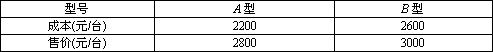 (2)該冰箱廠按哪種方案生產(chǎn),才能使投入成本最少?“家電下鄉(xiāng)”后農(nóng)民買家電(冰箱、彩電、洗衣機(jī))可享受13%的政府補(bǔ)貼,那么在這種方案下政府需補(bǔ)貼給農(nóng)民多少元?