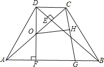 已知梯形ABCD中,AB∥CD,BD⊥AC于E,AD=BC,AC=AB,DF⊥AB于F,AC、DF相交于DF的中點(diǎn)O.