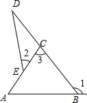 如圖,在△ABC中,∠1是它的一個外角,點E為AC上一點,延長BC到D,連接DE.求證:∠1>∠2.