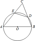 如圖,AB是⊙O的直徑,D,E是⊙O上的兩點,AE和BD的延長線交于點C,連接DE.