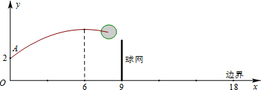 如圖,排球運動員站在點O處練習(xí)發(fā)球,將球從O點正上方2m的A處發(fā)出,把球看成點,其運行的高度y(m)與運行的水平距離x(m)滿足關(guān)系式y(tǒng)=a(x-6)2+2.6.已知球網(wǎng)與O點的水平距離為9m,高度為2.43m.