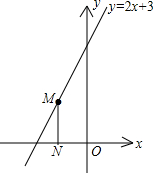 如圖,點M是直線y=2x+3上的動點,過點M作MN垂直于x軸于點N,y軸上是否存在點P,使△MNP為等腰直角三角形.小明發(fā)現(xiàn):當(dāng)動點M運動到(-1,1)時,y軸上存在點P(0,1),此時有MN=MP,能使△NMP為等腰直角三角形.那么,在y軸和直線上是否還存在符合條件的點P和點M呢?請你寫出其它符合條件的點P的坐標(biāo)________.
