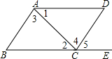 如圖,下列條件中:(1)∠B+∠BCD=180°;(2)∠1=∠2;(3)∠3=∠4;(4)∠B=∠5;(5)∠D=∠5,能推出AB∥CD的條件是______.(填寫序號)