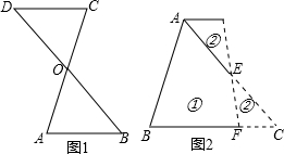 如圖1,若將△AOB繞點O逆時針旋轉180°得到△COD,則△AOB≌△COD.此時,我們稱△AOB與△COD為“8字全等型”.借助“8字全等型”我們可以解決一些圖形的分割與拼接問題.例如:圖2中,△ABC是銳角三角形且AC>AB,點E為AC中點,F(xiàn)為BC上一點且BF≠FC(F不與B,C重合),沿EF將其剪開,得到的兩塊圖形恰能拼成一個梯形.