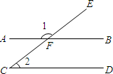 如圖,已知AB∥CD,CE交AB于F,若∠1=135°,則∠2=