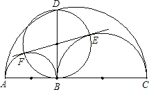 求證:(1)四邊形BEDF是矩形;(2)直線EF是以AB、BC為直徑的兩個半圓的公切線.