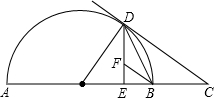 如圖,AB是半圓O的直徑,過半圓O上的一點(diǎn)D分別作AB的垂線與半圓O的切線,交直線AB于點(diǎn)E與點(diǎn)C,過點(diǎn)B平行于CD的直線交DE于點(diǎn)F,連接OD,BD.