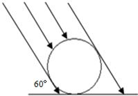 太陽(yáng)光線與地面成60°的角,照射在地面上的一只皮球上,皮球在地面上的投影長(zhǎng)是數(shù)學(xué)公式,則皮球的直徑是________.