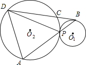 如圖,⊙O1與⊙O2外切于P點,過⊙O1上一點B作⊙O1的切線,交⊙O2于C、D,直線BP交⊙O2于點A.