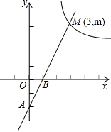 如圖,一次函數(shù)y=2x-2的圖象與x軸、y軸分別相交于B、A兩點,與反比例函數(shù)數(shù)學(xué)公式的圖象在第一象限內(nèi)的交點為M(3,m).